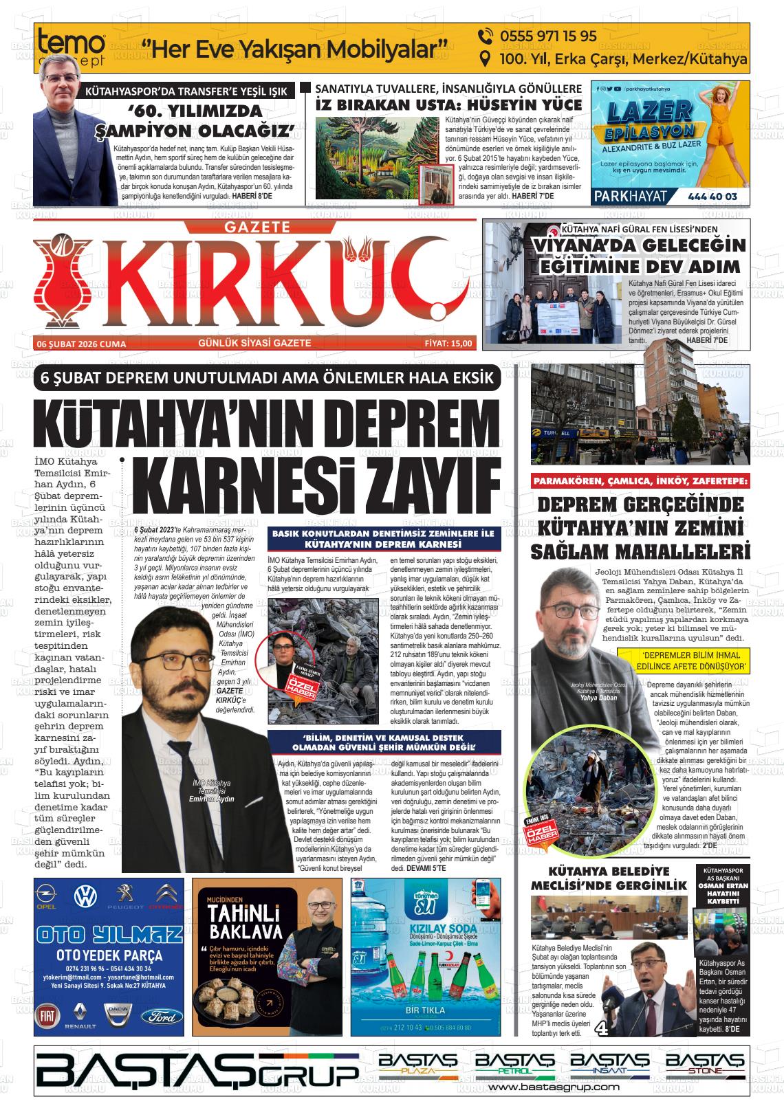 Kütahya Yerel Gazeteleri 07 Şubat 2026, Cumartesi Günü Manşeti