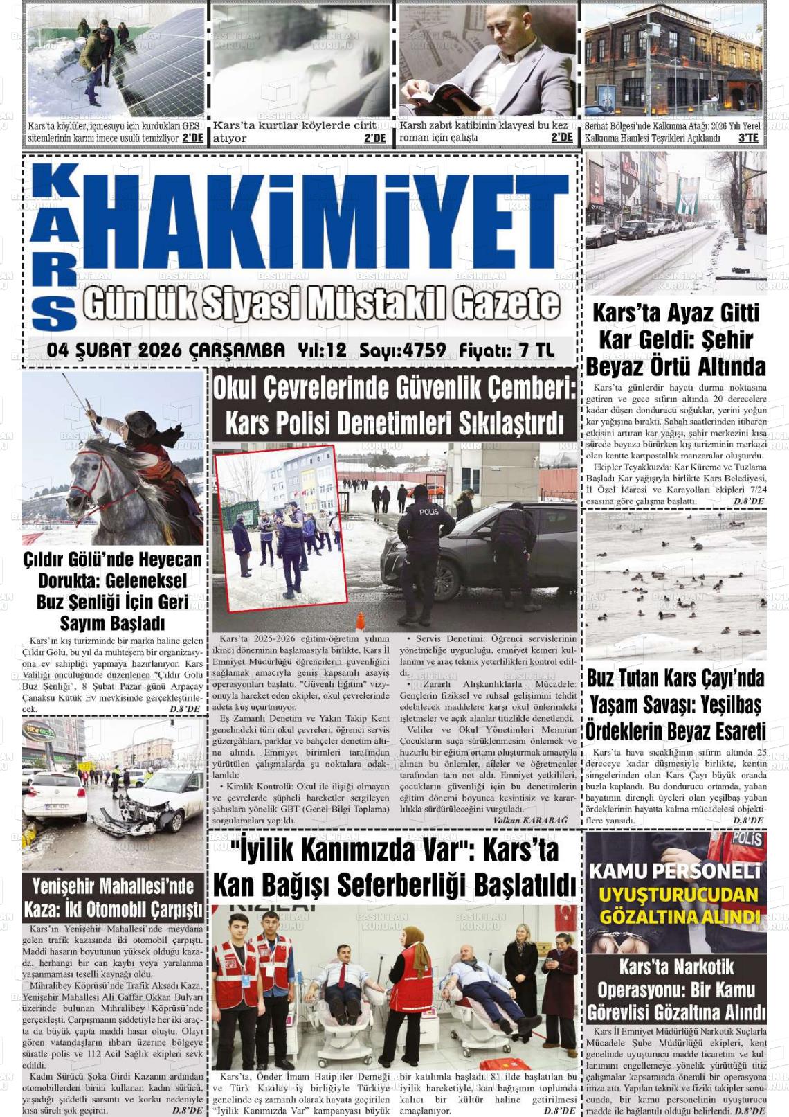 Kars Yerel Gazeteleri 05 Şubat 2026, Perşembe Günü Manşeti