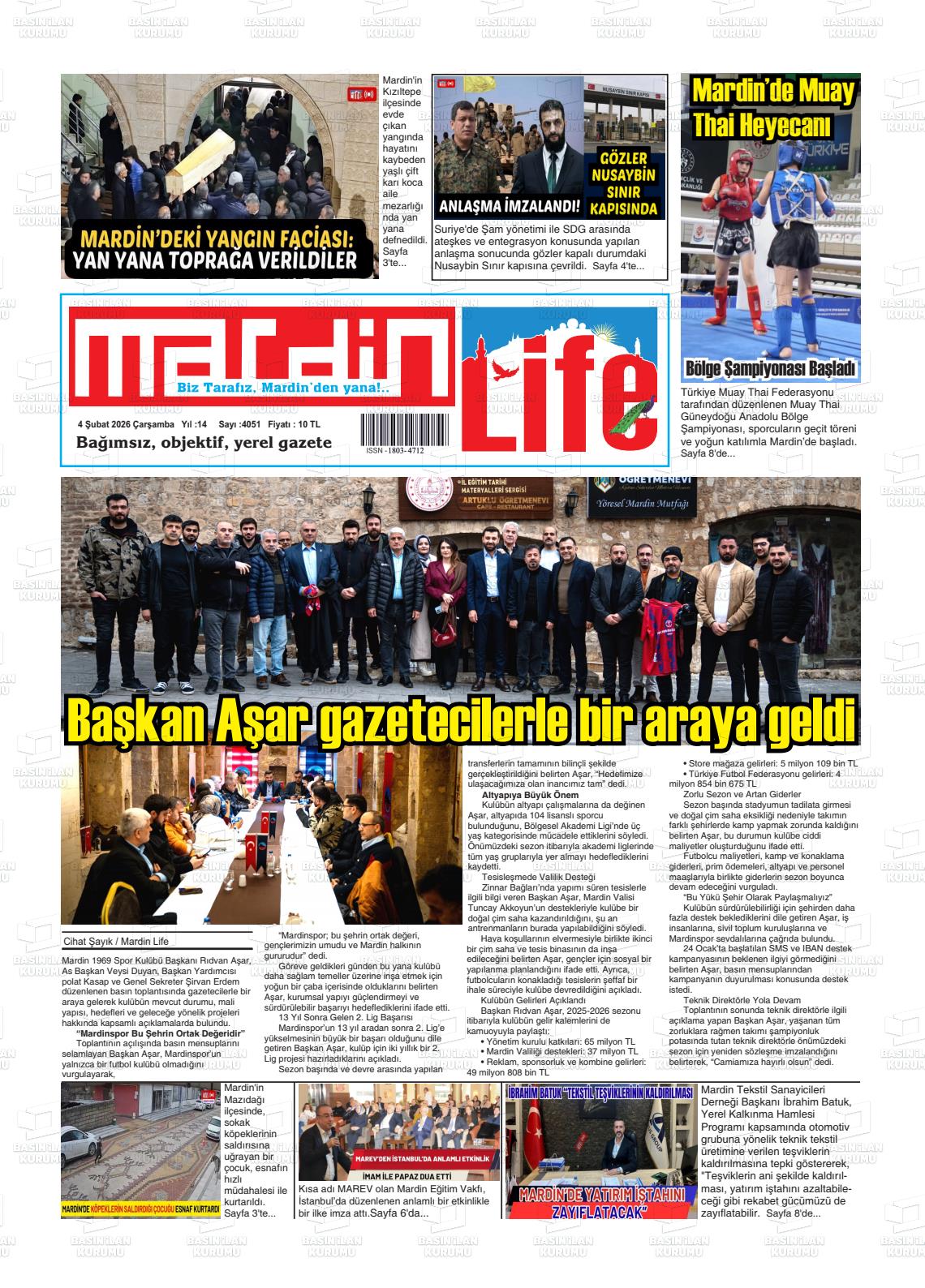 Mardİn Yerel Gazeteleri 05 Şubat 2026, Perşembe Günü Manşeti